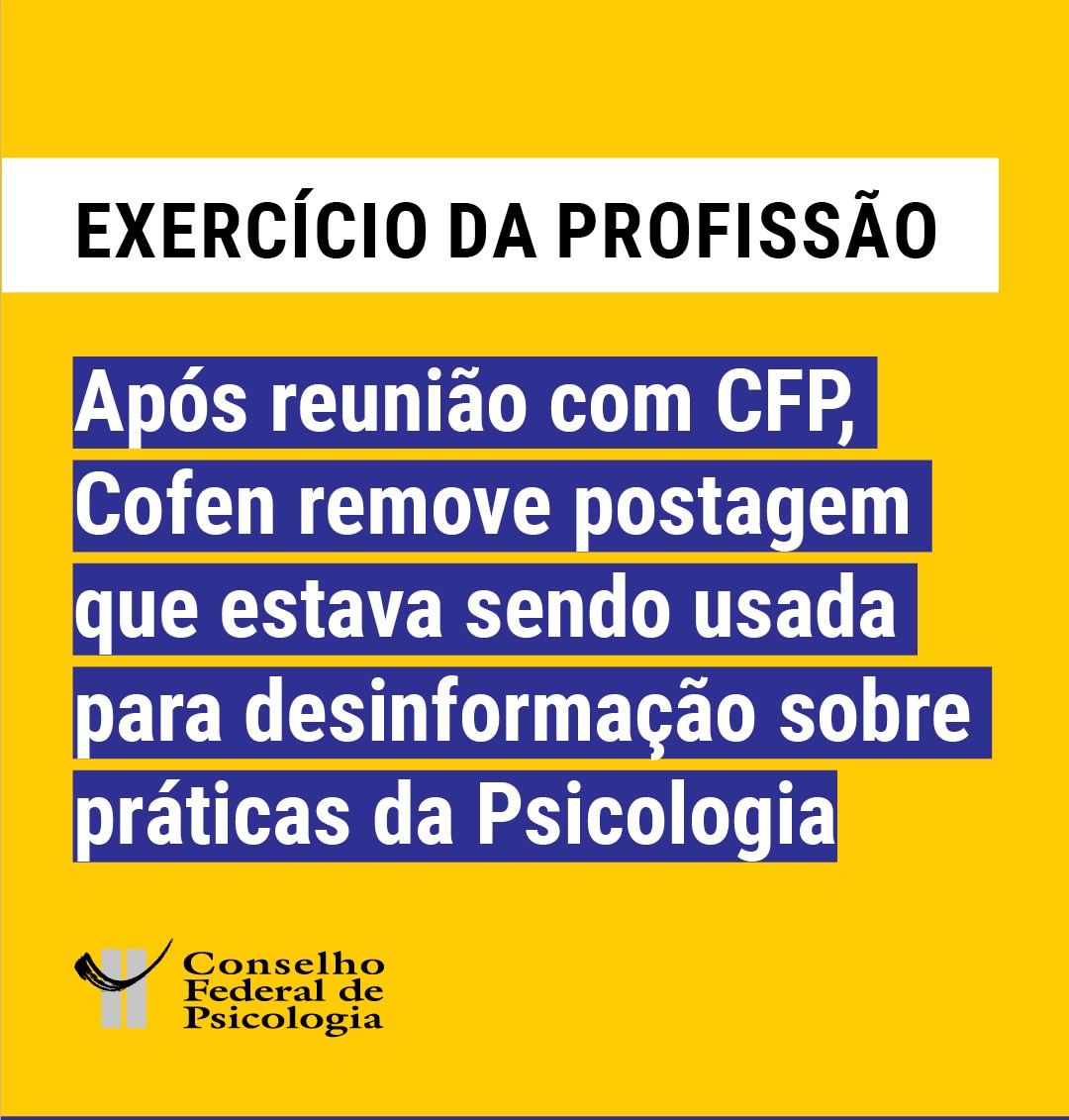 Após reunião com CFP, Cofen remove postagem sobre Parecer sobre Psicoterapia