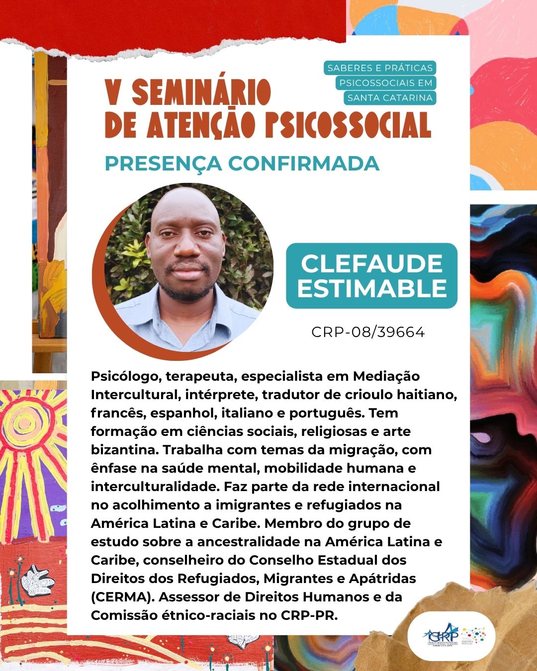 🔹 Clefaude Estimable — Psicólogo, terapeuta, especialista em Mediação Intercultural. Faz parte da rede internacional no acolhimento a imigrantes e refugiados na América Latina e Caribe;