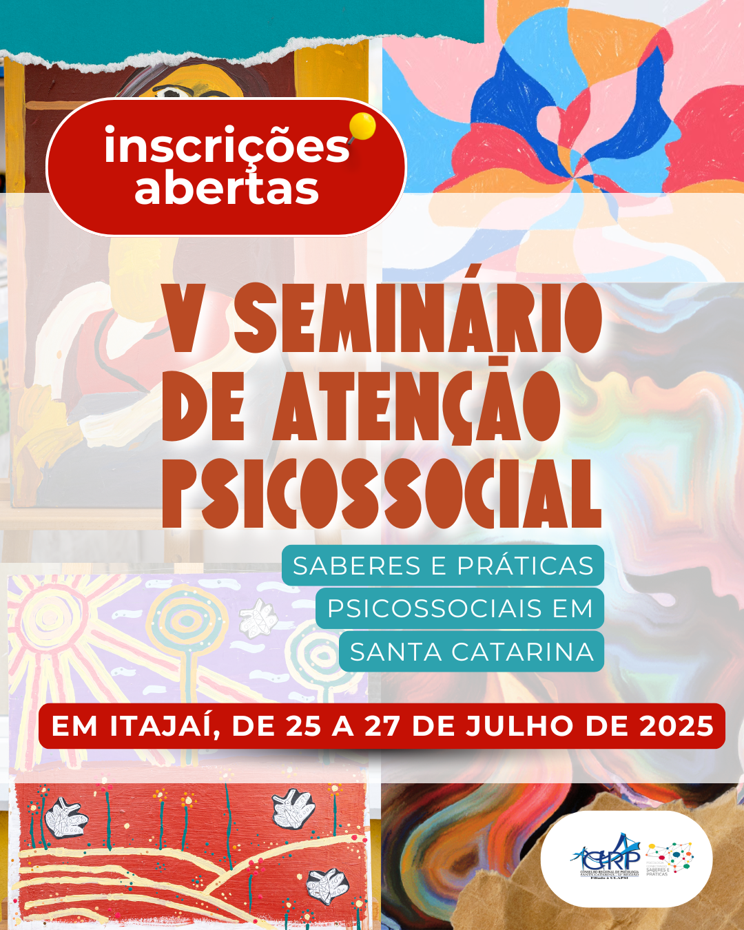 O Conselho Regional de Psicologia de Santa Catarina (CRP-12) convida psicólogas, usuárias, familiares e integrantes da RAPS para o V Seminário de Atenção Psicossocial — Saberes e Práticas Psicossociais em Santa Catarina, nos dias 25, 26 e 27 de julho, em Itajaí. Durante o evento, no dia 26, será realizada também a premiação da I Mostra Nacional de Práticas Profissionais “A Psicologia na luta pelo cuidado em liberdade: ontem, hoje, sempre!” — Etapa Santa Catarina.