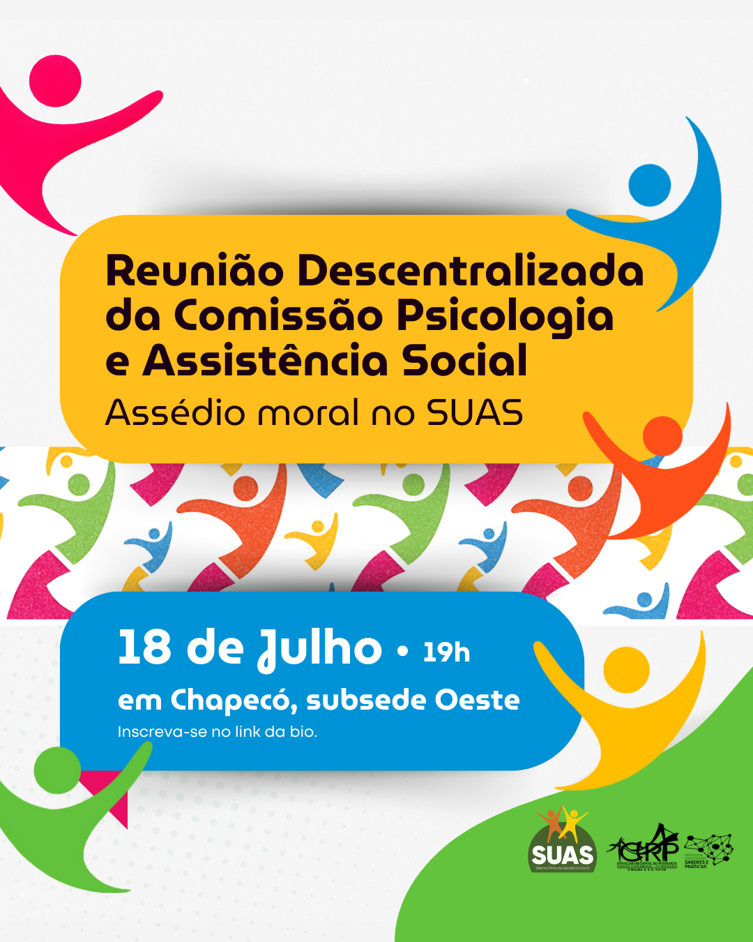 Inscreva-se no link: https://www.sympla.com.br/evento/reuniao-descentralizada-da-comissao-psicologia-e-assistencia-social—assedio-moral-no-suas/3023800