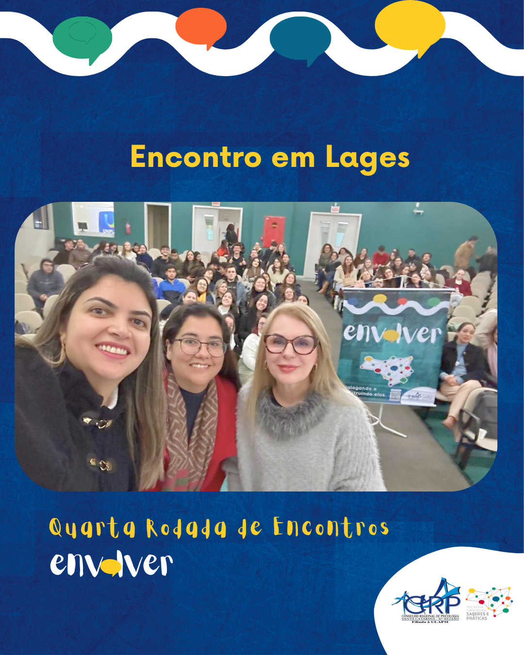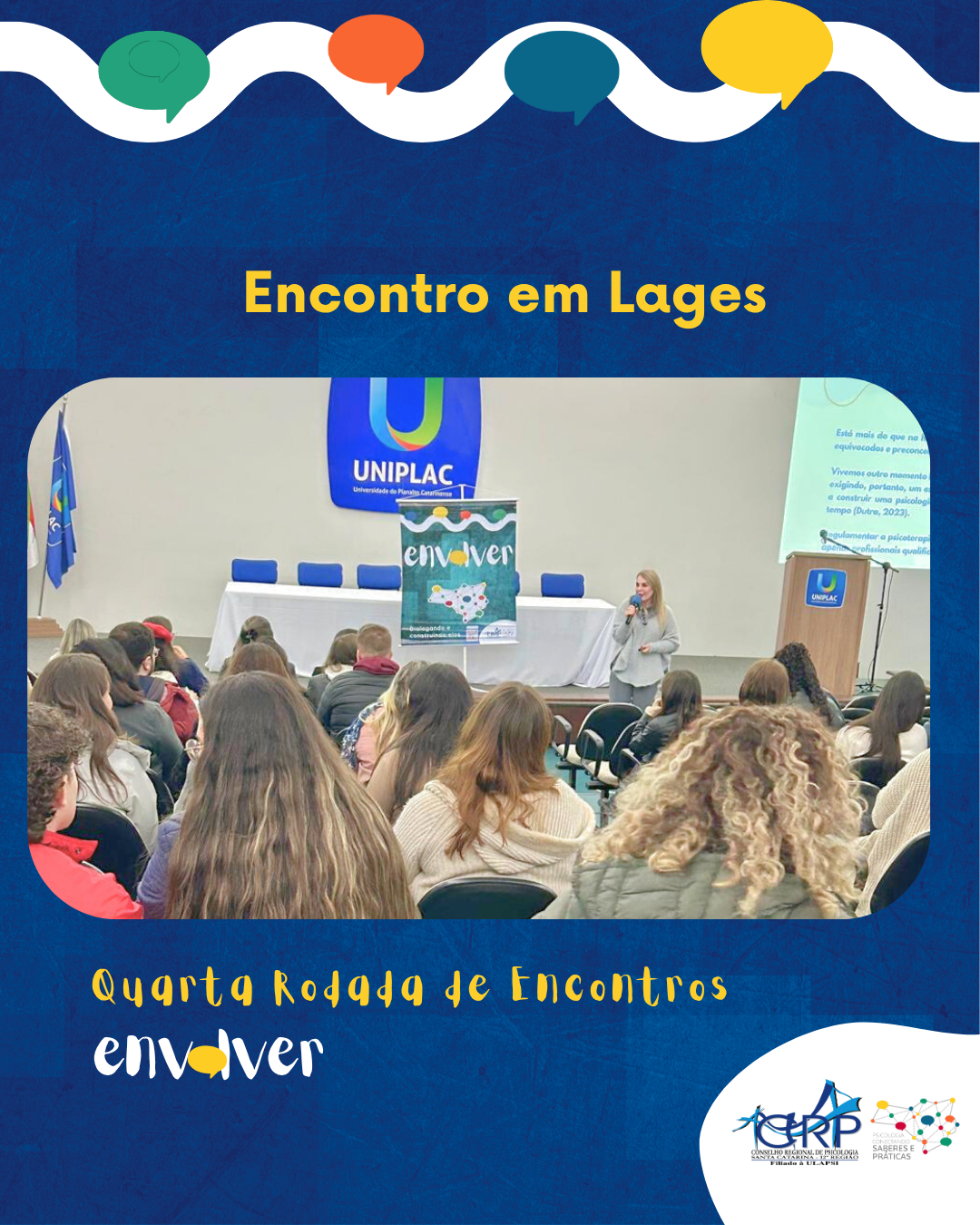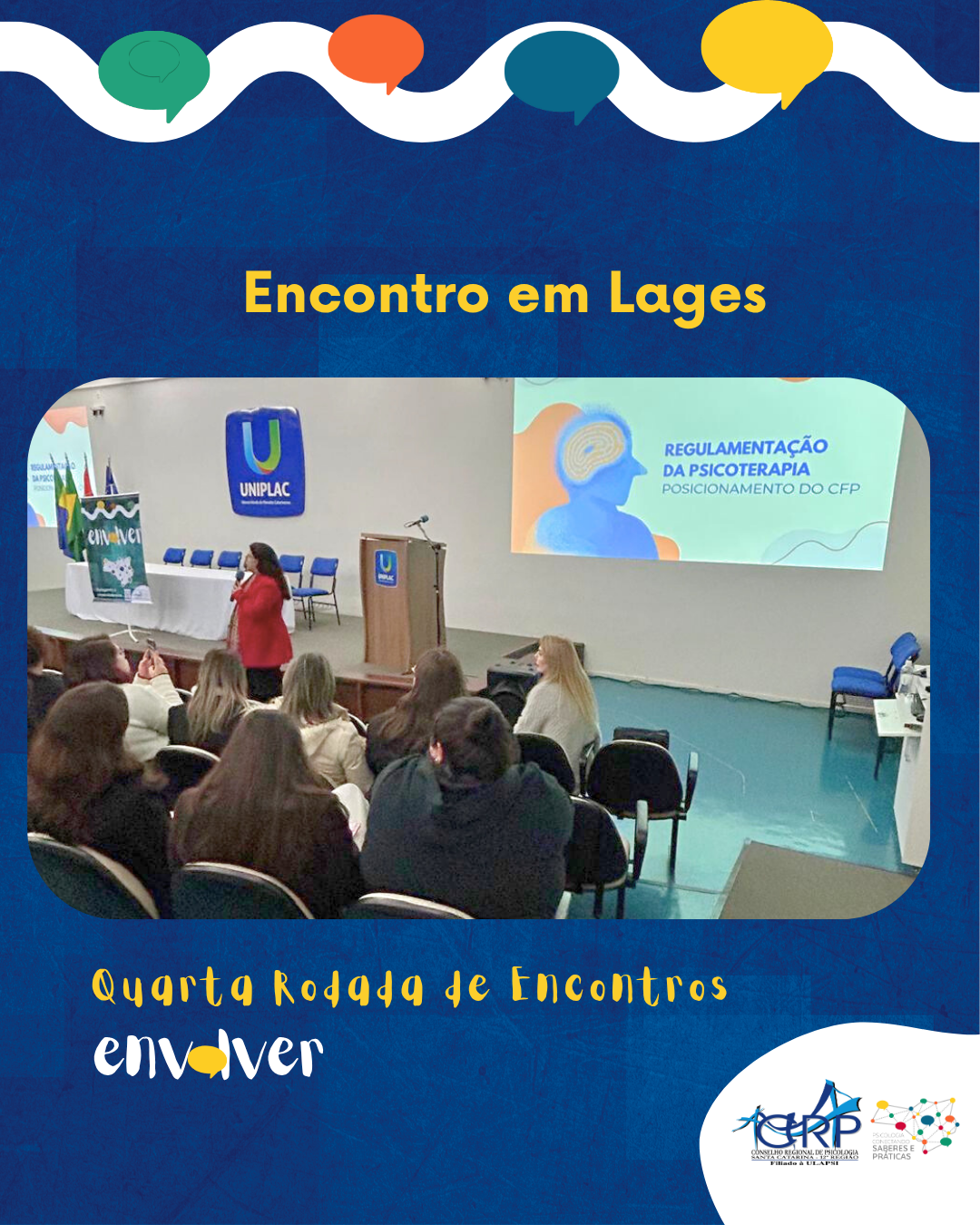 No último dia 11 de junho (quarta-feira), o Conselho Regional de Psicologia de Santa Catarina — 12ª Região (CRP-12) promoveu o quarto encontro do Projeto Envolver — Dialogando e construindo elos, no Auditório da Universidade do Planalto Catarinense (UNIPLAC) na cidade de Lages. O evento contou com a participação de cerca 100 estudantes e profissionais da Psicologia.