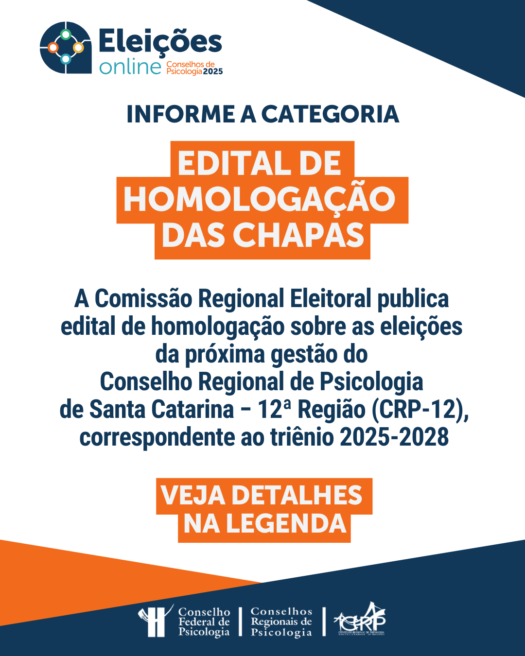 CRP-12 divulga edital de homologação das chapas para as eleições 2025–2028