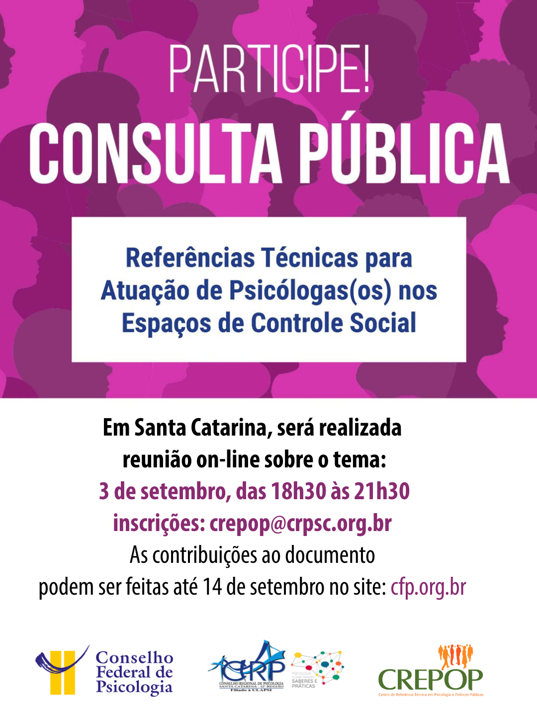 CRP-12 realizará consulta pública sobre referência técnica para atuação de psicólogas nos espaços de controle social