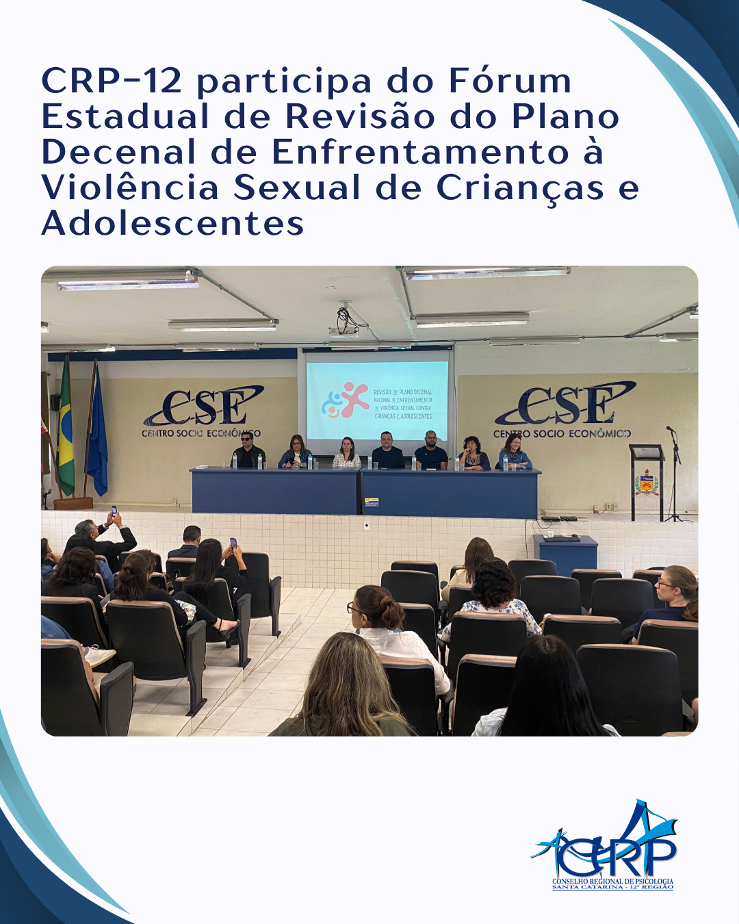 CRP-12 marca presença no Fórum Estadual de Revisão do Plano Decenal de Enfrentamento à Violência Sexual de Crianças e Adolescentes