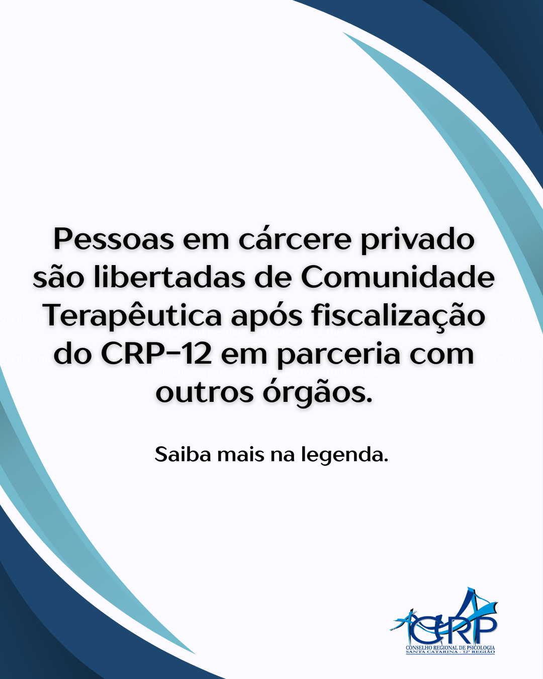 Após fiscalização do CRP-12, Justiça determina interdição total de Comunidade Terapêutica no Alto Vale Catarinense