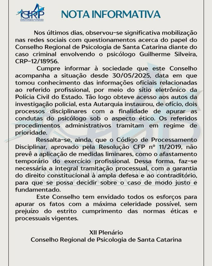 Nota Orientativa 01/2025 – Orientação sobre atribuição do CRP, supervisão profissional e papel do sindicato