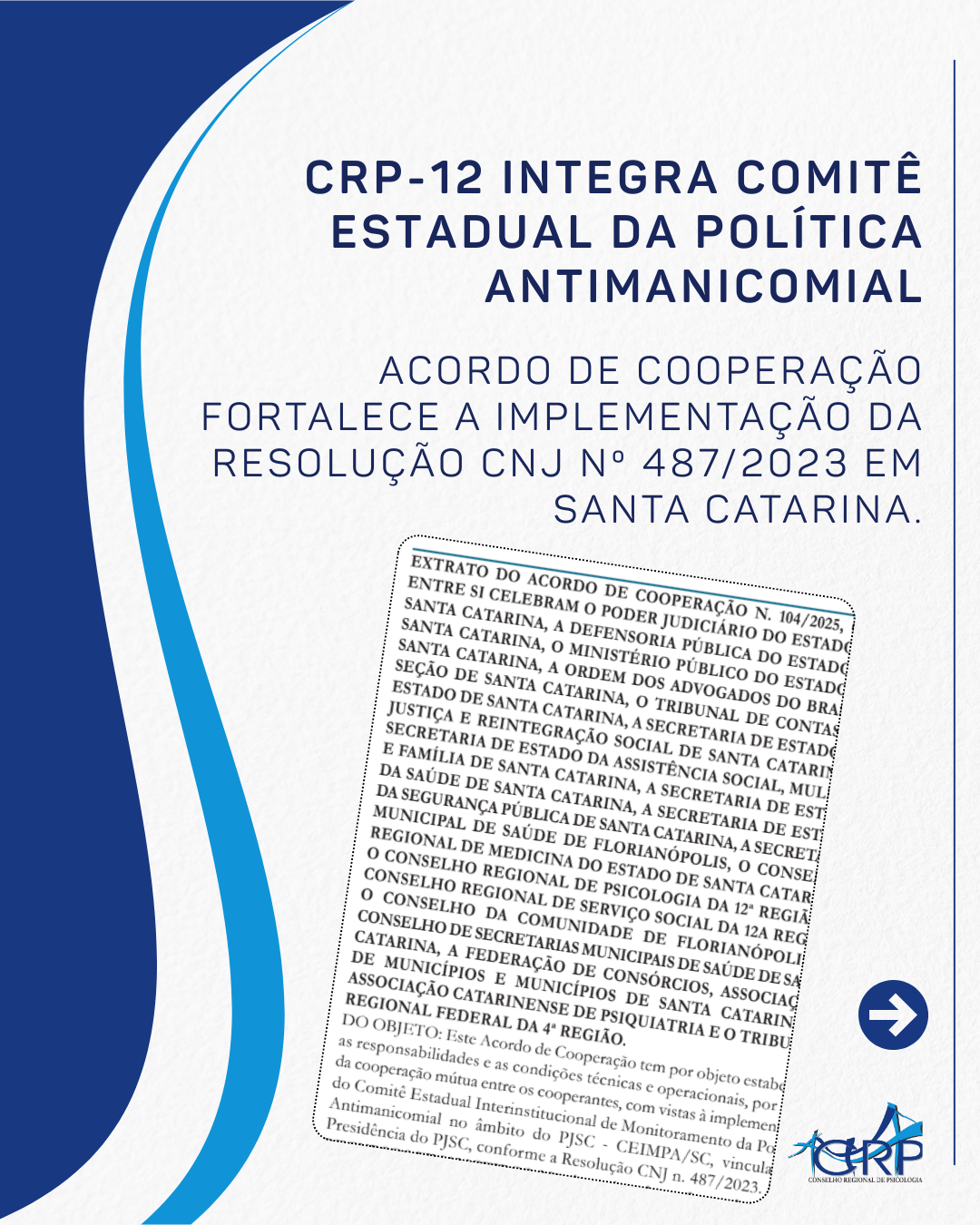 CRP-12 integra Acordo de Cooperação para implementação da Política Antimanicomial no âmbito do PJSC